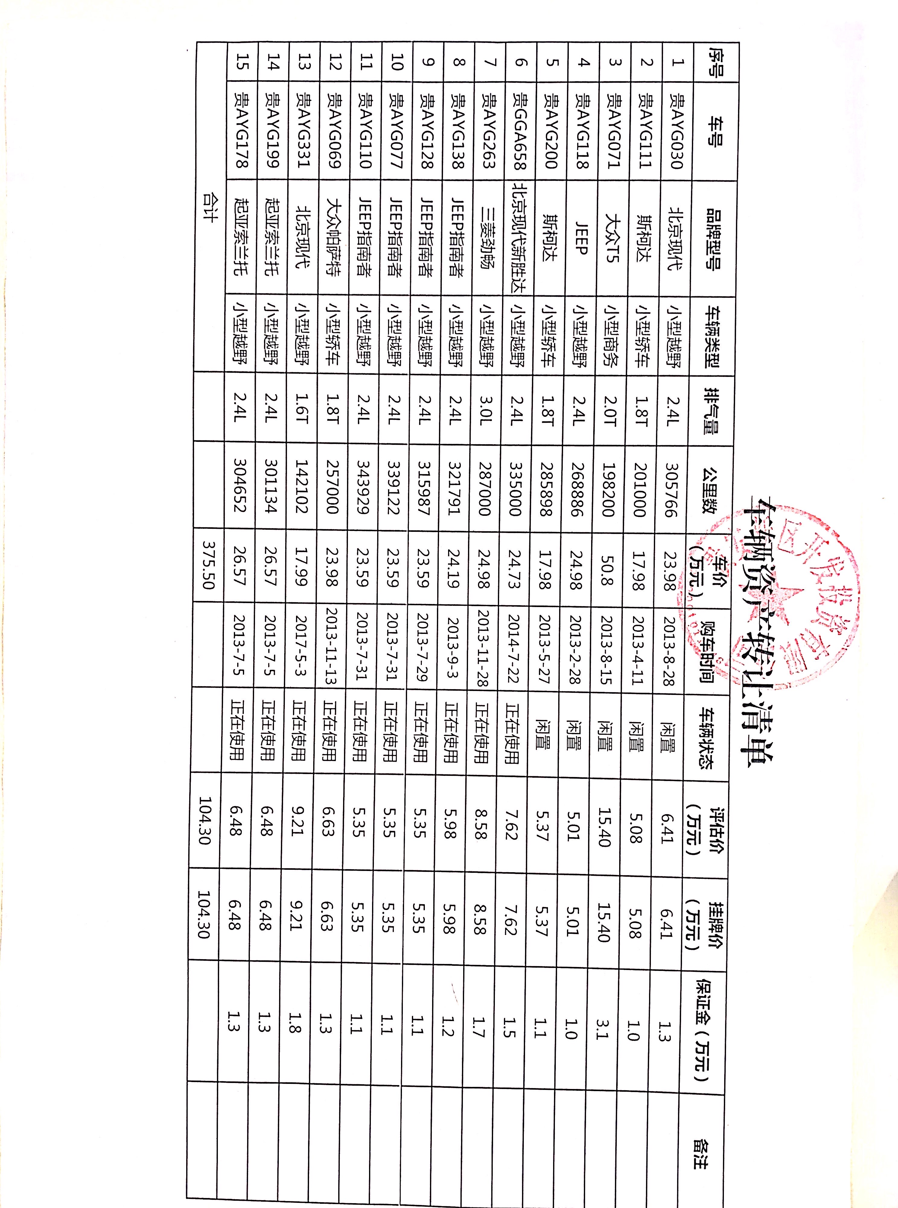 貴安新區(qū)開(kāi)發(fā)投資有限公司處置車(chē)輛一批