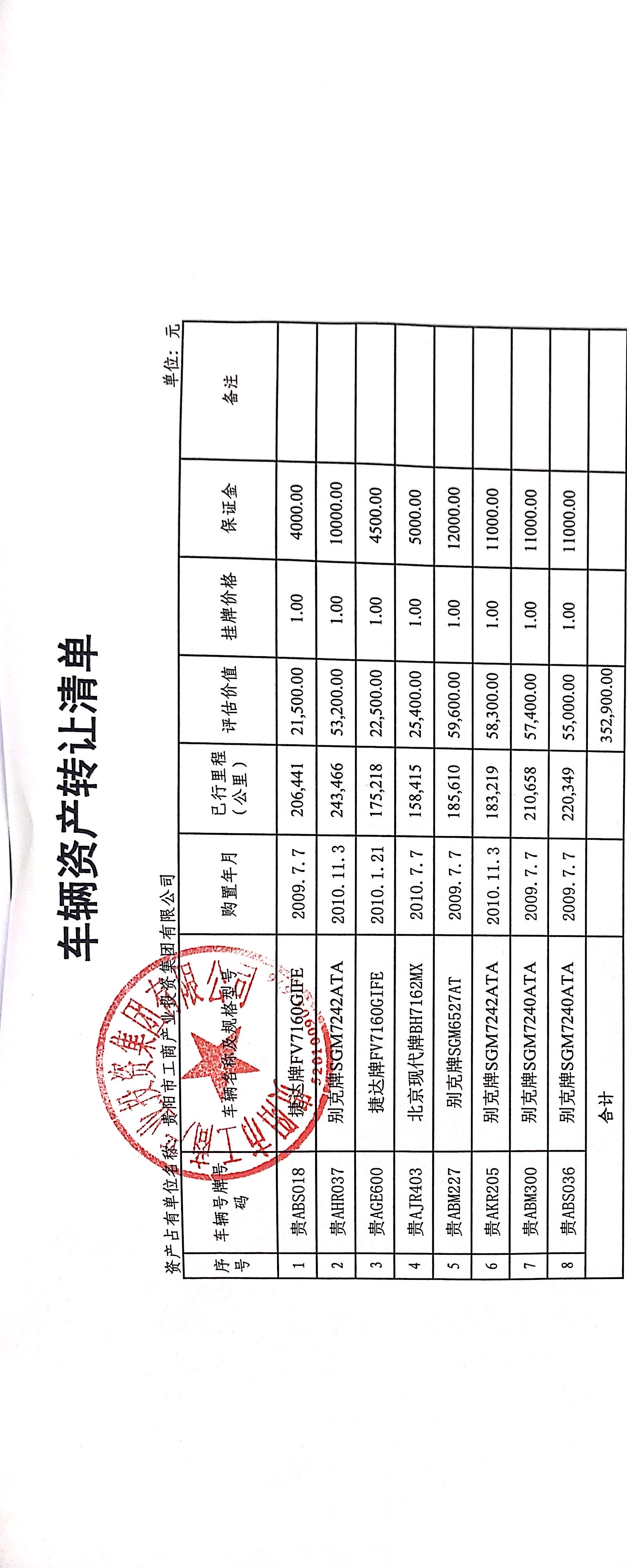 貴陽(yáng)市工商產(chǎn)業(yè)投資集團(tuán)有限公司處置車輛一批(無(wú)底價(jià))