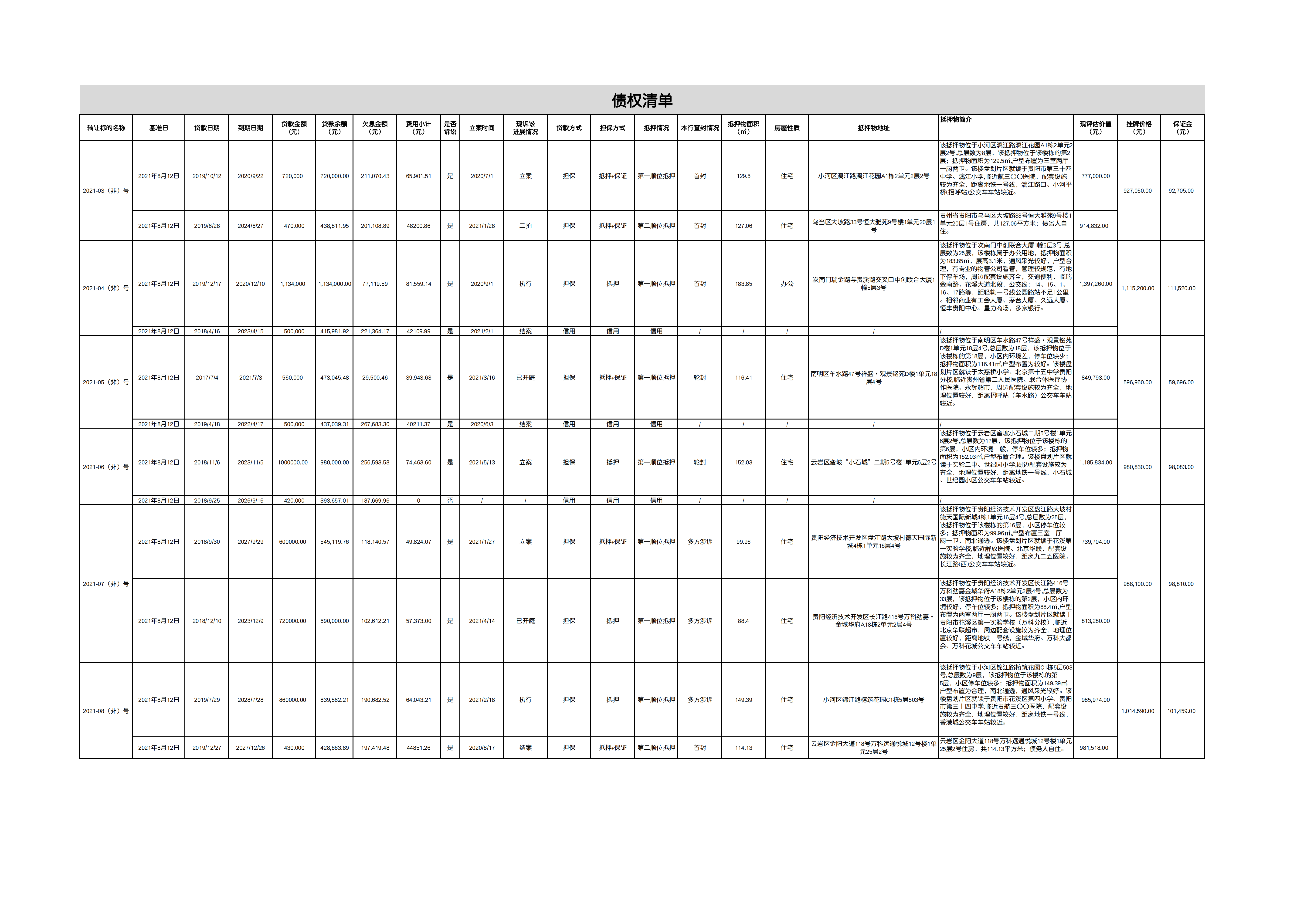 掛牌價(jià)格: 詳見(jiàn)“債權(quán)清單”