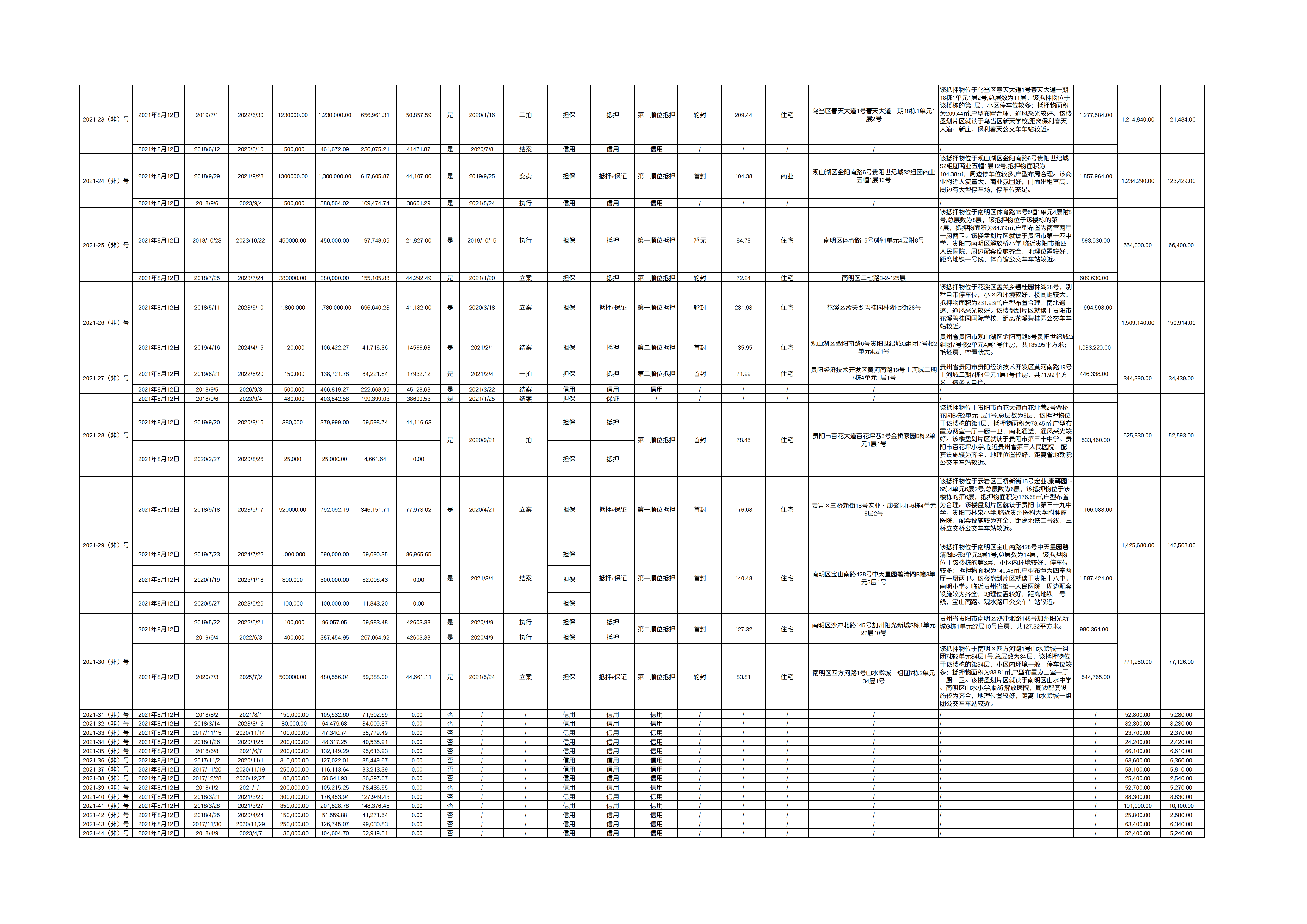 | 標(biāo)的名稱 | 修文農(nóng)商銀行2021-03(非)號(hào)至2021-44(非)號(hào) | |||||||