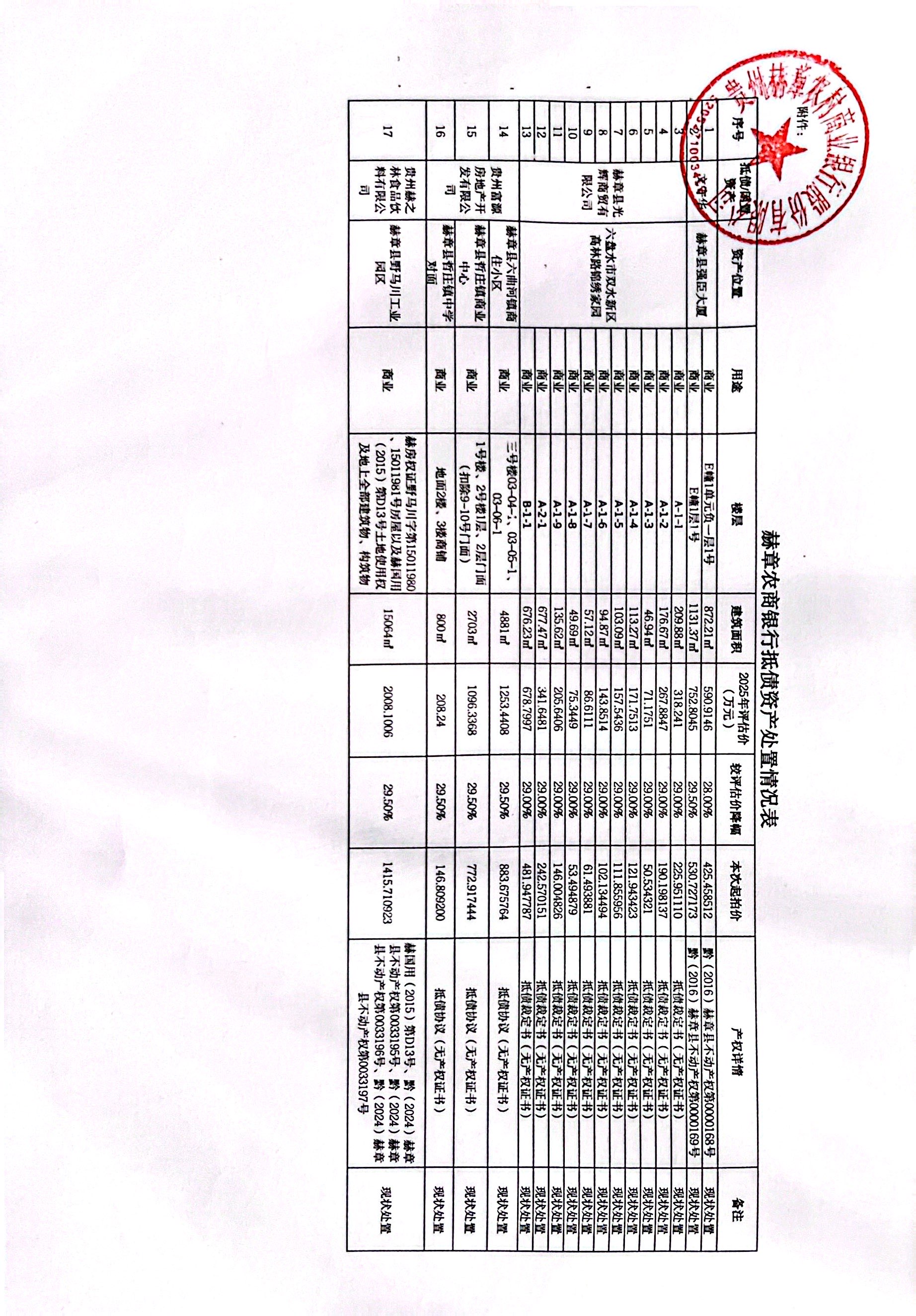 項目名稱:赫章農商行持有的17處資產轉讓項目(第二次掛牌)